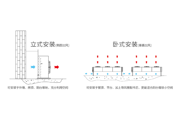 多樣化的送回風方式、送風方式可以分為上送風和下送風;回風方式可以分為頂回、下回正面回和背面回等多種回風方式。JC系列標準送風機外余壓為120Pa,最大余壓為420Pa。